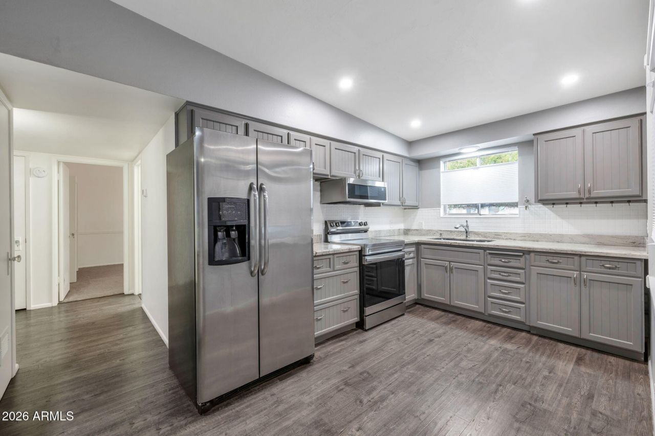This newly remodeled 2-bedroom, 1.75-bath condo in Sun Citys 55+ community offers 1,074 sq ft of stylish living space. Featuring luxury Laminate flooring throughout living areas, a modern kitchen with stainless steel appliances and gorgeous countertops, and a new carpet in the bedrooms, this home is move-in ready. Youll be greeted by luxury Laminate flooring throughout the main living areas and walkways. The spacious, open concept living room is filled with natural light, creating an atmosphere ideal for both relaxing and entertaining. Enjoy a private outdoor patio perfect for relaxation. Extra workshop area plus an AZ Room. Community Recreation Centers with pools and fitness centers, close proximity to shopping and dining. Ideal for a low-maintenance, active lifestyle. NEW DISHWASHER