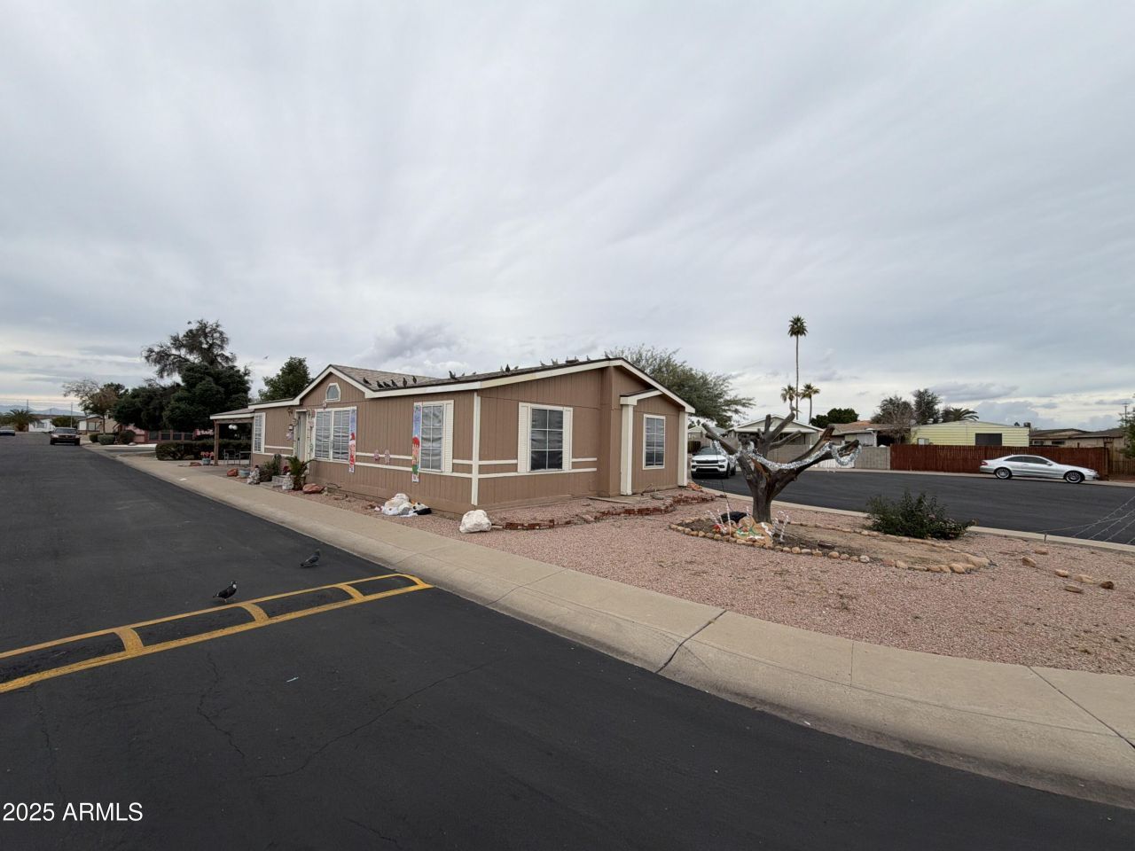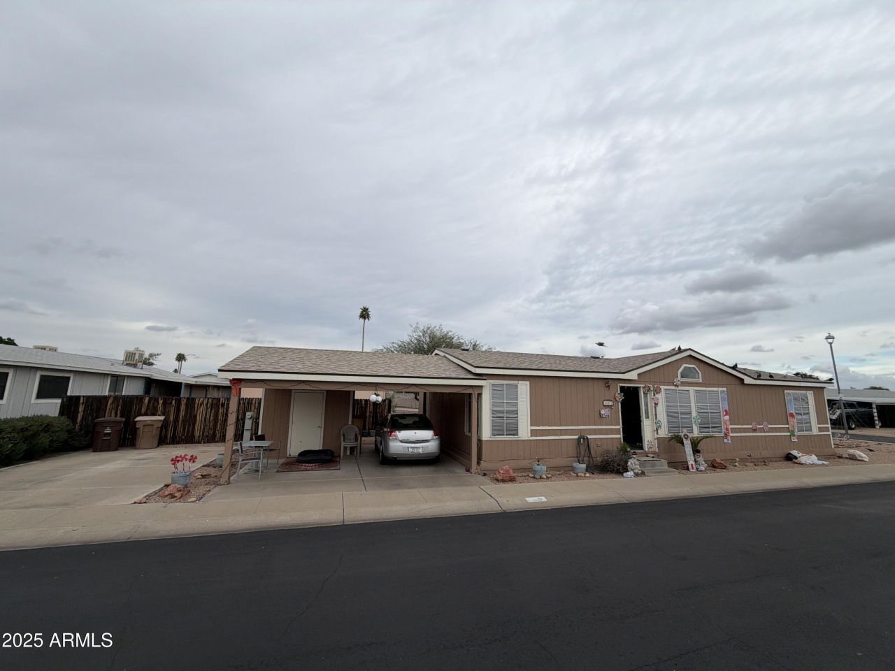 Charming 3-bedroom, 2-bathroom manufactured home in the desirable Sun Valley mobile home community, a non age restricted neighborhood in Peoria. This 1,372 sq ft residence, built in 1976, features a split floor plan with an open living area, ceiling fan, eat-in kitchen with dishwasher and disposal, inside laundry, and covered carport parking.Recent updates include a roof approximately 4 years old, 6-year-old HVAC system, and 6-year-old hot water tank. Original kitchen and bathroom features remain, with carpet and linoleum flooring throughout. Low-maintenance desert landscaping with rock yard and mature trees.Enjoy community amenities including a swimming pool and recreation center. Convenient location near shopping and highways. Property sold as-is.