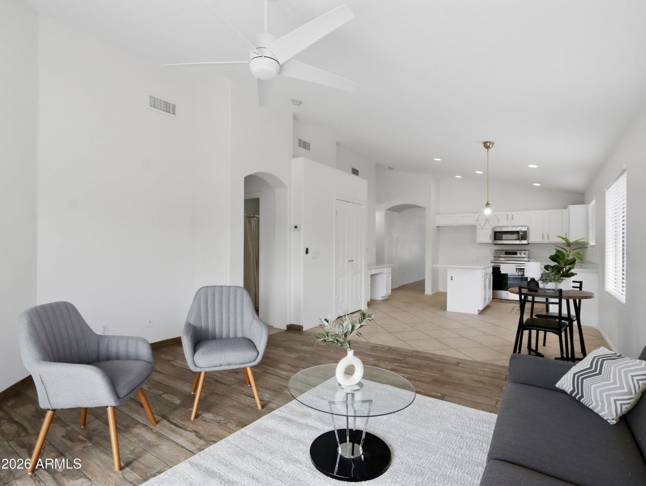 Welcome to this move in ready 4 bedroom 2 bath home located in the desirable Durango Park community in Avondale. Fresh crisp white interior paint, vaulted ceilings, and updated light fixtures create a bright and open feel throughout. The kitchen features granite countertops and ample workspace for everyday living.The spacious primary bedroom offers a walk in closet and a private ensuite bath. Newly installed gravel in both the front and backyard provides clean low maintenance outdoor spaces with great curb appeal.Conveniently located minutes from the I 10 freeway, shopping centers, schools, and community play areas. Durango Park residents enjoy access to a community pool and spa, a central neighborhood park with covered playgrounds, sports courts and fields, picnic areas with BBQ grills, and walking trails.Seller is an active licensed Arizona real estate agent. Listing Agent and authorized signer of the seller LLC are related.Go see today and experience the comfort, convenience, and community this home has to offer!