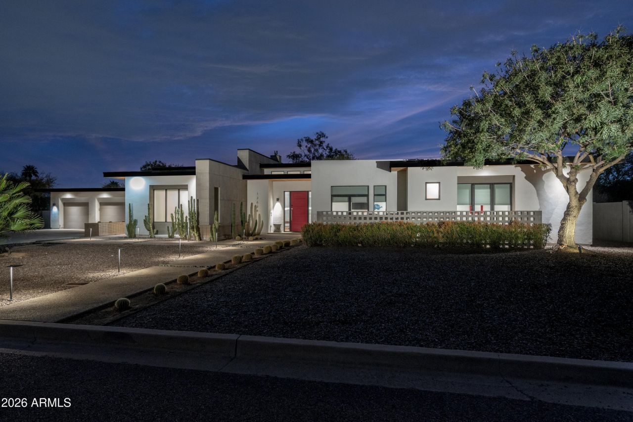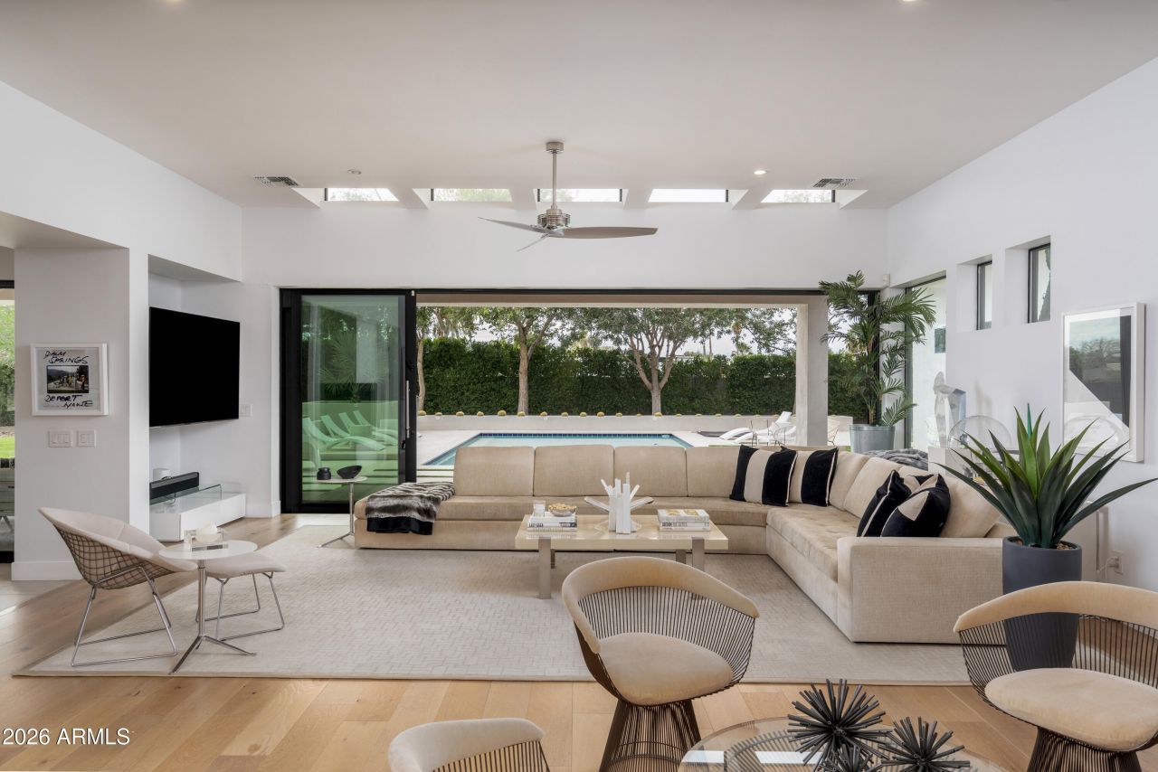 Magazine-worthy modern home in the heart of Scottsdale within 1 mile of premier shopping and restaurants. This like-new construction offers 4 bedrooms plus office and 3.5 baths on over half an acre. Features include new roof, new exterior paint, engineered wood flooring, and 24-inch porcelain tile. Designed for indoor-outdoor resort living with retractable sliding glass doors opening to a private backyard with pergola, outdoor lounge with TV, built-in grill, fire pit, lap pool, spa, lush green landscaping, and limestone decking. Chefs kitchen with Thermador stainless steel appliances, quartz countertops, custom cabinetry, oversized island with dual sinks, gas cooktop, and gas tri-view fireplace. Scottsdale luxury living at its finest.