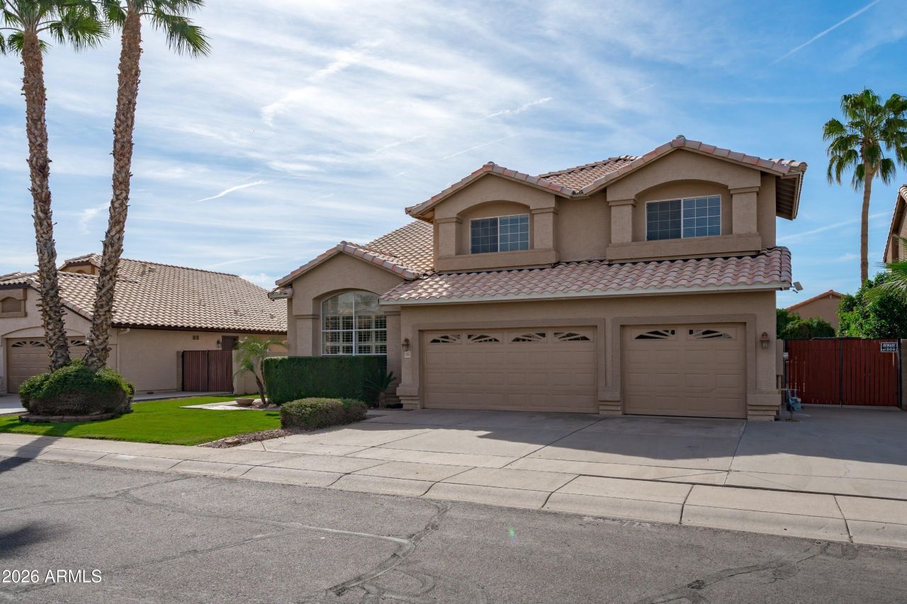 Exceptional opportunity in the heart of Gilbert offering over 3,500 square feet of flexible living space, North/South exposure, and a 3-car garage, all paired with a true resort-style backyard. This property is currently operating as a successful short-term rental, providing both lifestyle flexibility and income potential for future owners.This expansive 5-bedroom home also features a large upstairs loft and a separate bonus/game room with double doors on the main level, ideal for a private office, den, media room, or potential additional bedroom. The versatile floor plan provides multiple living areas, generous room sizes, and excellent functionality for multi-generational living, remote work, or guest accommodations.The backyard is the showpiece... Designed for entertainment and relaxation, the oversized pool includes a dramatic rock waterslide, waterfall feature, and built-in grotto, creating a private resort atmosphere.The outdoor kitchen with built-in BBQ and bar seating makes hosting effortless and enhances the overall indoor-outdoor living experience.Additional highlights include an 8-foot RV gate with concrete pad, attic storage, and extensive cabinetry within the 3-car garage.The home currently operates as a highly rated short-term rental and is recognized as a Guest Favorite with an impressive 4.94-star rating. The HOA permits short-term rentals, offering flexibility for buyers seeking income potential, a hybrid investment property, or a full-time residence.Conveniently located near neighborhood parks, highly regarded schools, and just minutes from the dining, shopping, and entertainment of the Heritage District, this home combines space, location, and resort-style living in one compelling package.Homes offering this level of bedroom count, flexible layout, backyard amenities, and proven short-term rental performance are rare in this area.