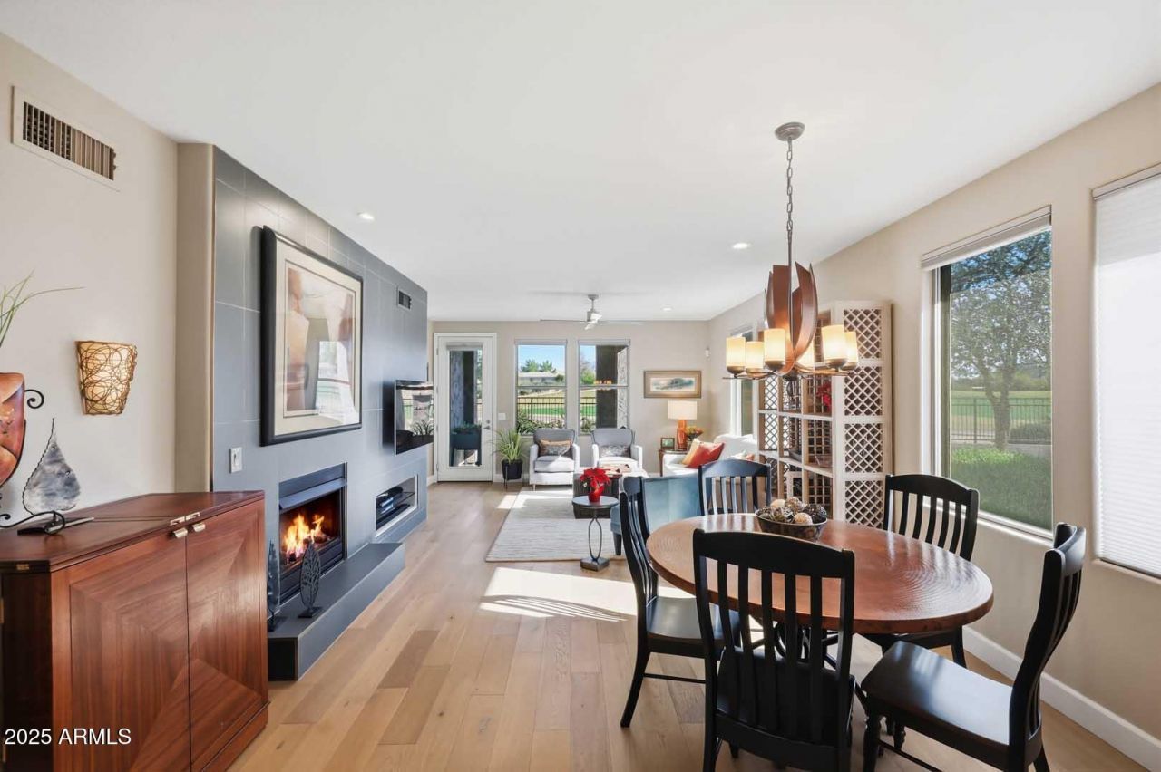 STUNNING fully renovated ground floor condo with northeastern mountain and golf course views. Upgrades include open concept, custom cabinetry and quartz counters in kitchen and baths, hardwood floors throughout and porcelain tile in both baths. Every surfaced touched! A true SHOW STOPPER, the perfect winter retreat w/a 2-car attached garage & no interior steps. Perfectly located to shop and dine at Kierland Commons and Scottsdale Quarter. No short-term rental restrictions.