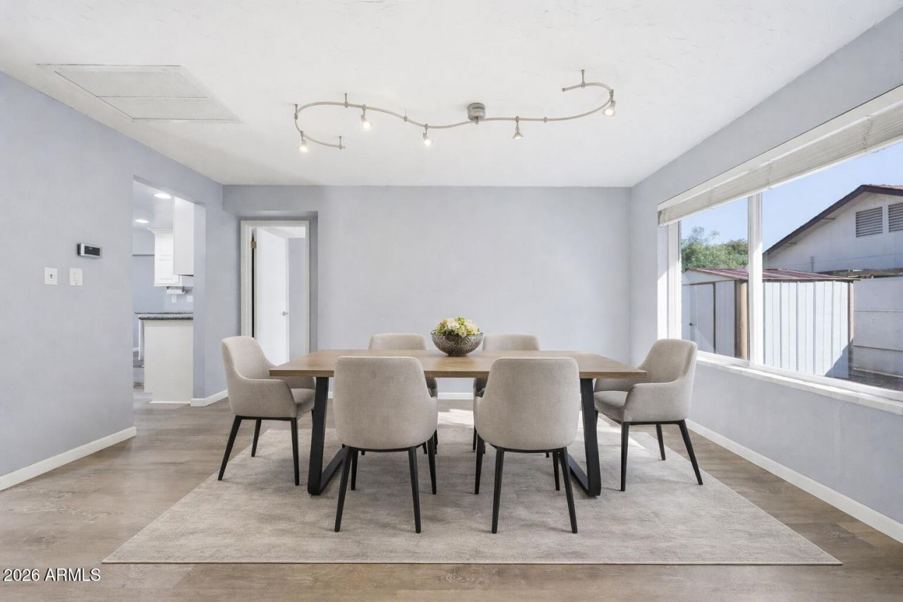 Enjoy GOLF COURSE VIEWS from your very own private backyard oasis in this beautifully updated 4 BD | 2 BA, perfectly situated on the 15th tee box of the Dobson Ranch Golf Course, where no golf balls ever come toward the home! Inside, youll find upgraded flooring throughout, updated lighting and ceiling fans, window tinting, and a versatile electric fireplace that can be removed to restore a full wood-burning option. The updated kitchen offers bar-top seating, an eat-in kitchen, Silestone countertops, refinished cabinetry, ample cabinet space, and stainless steel appliances. A separate formal dining room creates an ideal space for entertaining and special occasions. The family room offers exceptional versatility and is currently being used as a flex space for a pool table, easily adaptable to suit your lifestyle, whether as a media room, game room, or additional lounge area, while taking in golf course VIEWS from this bright, light-filled space. Additional conveniences include a Ring doorbell system, whole-home water softener, attached garage cabinetry with workbench, and an RV gate - perfect for your toys. Both bathrooms have been updated with new countertops and cabinetry, providing a clean, modern feel. Enjoy low-maintenance outdoor living with turf and pavers in the backyard, a removable pool fence, a storage shed, and relaxing golf course views from the poolside. Major updates include a newer HVAC system (2019) and washer/dryer (2021). Ideally located near Scottsdale, Downtown Gilbert, Tempe, ASU, dining, shopping, and recreation, with easy access to Sky Harbor Airport, light rail, bus routes, and the 101, 60, and 202 freeways. Community amenities include pools, walking paths, and greenbelts, completing the lifestyle this home offers. Welcome home! Make this Dobson Ranch gem yours today.