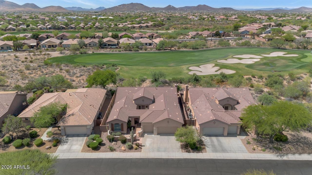 Impressive, elevated golf course and mountain view in Anthem Country Club. A backyard you can really enjoy with a pebble tec pool, spa & built-in BBQ. This popular floor plan blends indoor and outdoor living. Ideal for entertaining and relaxation amidst breathtaking scenery. Kitchen features breakfast bar, pendant lighting, two pantries and crown molding extending into the family room. Spacious setting with fireplace and built in cabinetry, view and access the covered patio. Appreciate all the owners suite has to offer. Wake up to the spectacular view. Slip outside to take in the morning sun with patio access. Relax in soaking tub, dual vanities for convenience, and a spacious walk-in closet for ample storage. A perfect retreat for comfort and elegance! Plenty of flex space in living/ dining room and the office complemented with French doors. Dont miss this opportunity to have some of the most spectacular views in the country club!Anthem Golf & Country Club is in master planned community were you can truly enjoy resort style living all year. Gated community with 36 holes of championship golf, tennis and pickleball courts, fitness clubs, pools, and restaurants. Experience exceptional living in Anthem Country Club!