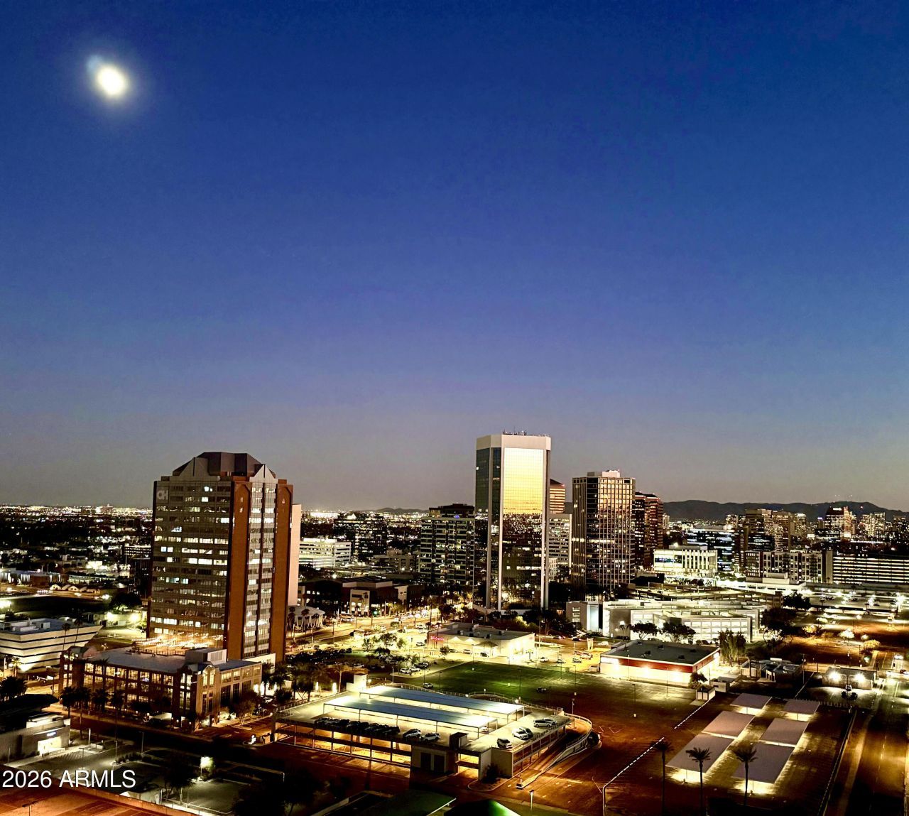 Million dollar views!! This desirable, 17th floor,2 bedroom, 2 bathroom end unit has forever views of the beautiful Phoenix skyline and surrounding mountains. Enjoy the nighttime lights from 3 large balconies. Bring your design ideas to this blank canvas. ALL UTILITIES ARE INCLUDED IN THE HOA! Amenities galore, like workout facility, 24/7 concierge, 3 elevators, Assigned gated secured parking and more. Perfectly located in Midtown close to the light rail for convenient access to all the fantastic sport and concert venues, not to mention the GREAT dining. Take the light rail to the airport or ASU Law & Medical Campuses, Symphony Hall, ASU Tempe.