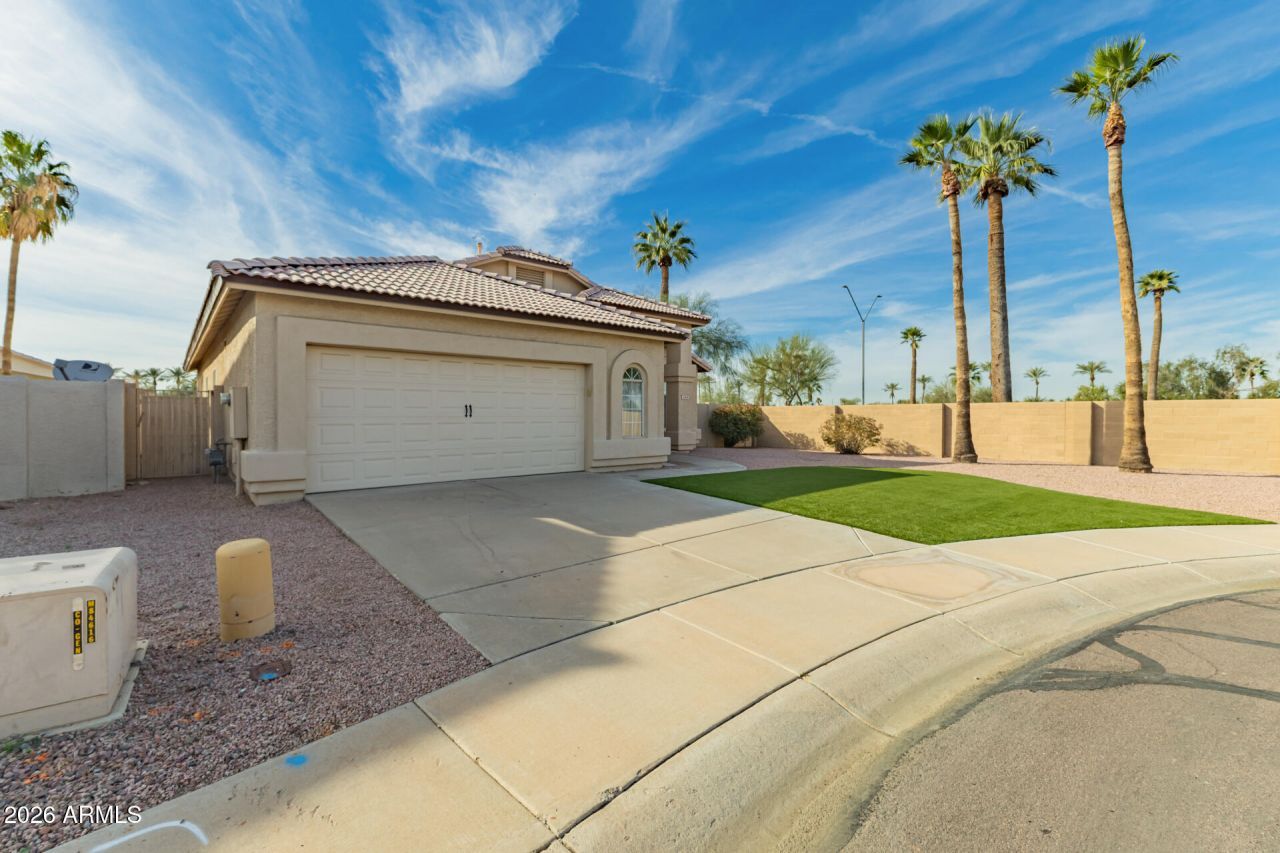 Immaculate, move-in ready single-story home on a quiet cul-de-sac in a highly desirable school district.This 4-bedroom, 2-bath home offers 1,900 sf of well-designed living space and has been meticulously maintained. Major upgrades include a new roof & patio roof (2024)30 year warranty, top of the line TRANE AC (2017), garage door/opener replaced in 2019, & fresh interior paint throughout, with newly painted exterior facia & patio, new carpet, new flooring in master bath, new sunscreens, Hot water replaced 2020, Gas BBQ stub, handicap accessible & a cozy gas fireplace in the Great room. Located within walking distance to Palm Valley Golf Course,YMCA, Palm Valley Elementary School & restaurants. This pristine home offers comfort & quality. Truly Move in Ready & a MUST SEE!!!