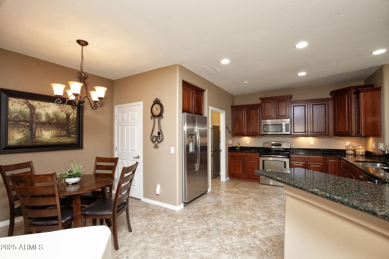 This Home has it all! A Charming Lightly Lived-in Jamboree Model offering 1,819 sq ft of Open Concept Living! This home is TURN KEY and FULLY FURNISHED with 2-Bdrms, 2 Baths, Den, Breakfast Nook and LARGE Gathering Room. The home includes Custom paint, Diagonal large format Neutral Tile and Custom Window Shades throughout the home. The Gourmet Kitchen has stunning Black Granite Countertops and includes S/S Appliances, Upgraded Staggered Cabinets w/ Accent Lighting both above and below the Cabinets. The home offers an Eating Bar AND Breakfast Nook! The large Primary Bedroom includes a Bay Window, Walk-in Closet and en-suite Bathroom. The Primary Bathroom has dual vanities and includes a Zero-threshold Tiled Shower! The laundry room is unique with a stacked S/S washer & Dryer and Custom Cabinets. The Extra-length (27) Garage has Epoxy Floors and includes Built-in Storage Cabinets and an additional Refrigerator. Outside you will find a perfect place to entertain family and friends! The Backyard has an extended patio with attractive, professional, low-maintenance Landscaping. This home comes complete and is a perfect way to start enjoying the Award Winning Sun City Festival Active Adult Lifestyle!