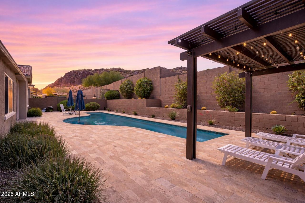 One of the most sought after LUXURY floor plans is now available in North Peoria! This stunning 4-bedroom, 3.5-bath home PLUS an OFFICE, 2 FLEX ROOMS, and features up to SIX parking spaces! Need 5 bedrooms? The office can be converted to a 5th bedroom with ease. Located just minutes from North Peorias 4 Corners and some of Arizonas top-rated schools, including Basis Charter, the newly built ALA Campus, and Great Hearts, this property is a short drive to LAKE PLEASANT and is surrounded by hiking trails and some of the most scenic mountain views Peoria has to offer. Featuring an RV pad perfect for parking additional vehicles, a two car garage with epoxy flooring, an RV gate, extended paver driveway (park up to 6 vehicles with ease), and a charming low-maintenance front yard landscape, this homes curb appeal is sure to please. Inside this beautifully updated home, you will find floor-to-ceiling finishes, including an Ironworks entry door, PLANTATION SHUTTERS, a custom FIREPLACE build-out, decorative WOOD BEAMS, barn doors, CLOSET SYSTEMS, custom accent walls throughout, and a stunning kitchen with quartz countertops, exposed shelving, R/O system, a massive walk-in pantry, and a large kitchen island perfect for hosting. The media room is complete with an 82-inch TV and surround sound speakers, elevating your movie night experience!