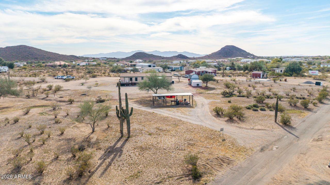 Beautifully updated manufactured home on just under 2.5 acres in Surprise! Offering 3 bedrooms + den, 2 bathrooms, and over 2,000 sq. ft., this property combines space, comfort, and functionality.Major improvements include a new A/C (2023) and new water tank (2024). The upgraded kitchen features granite countertops, updated cabinetry, and black stainless steel appliances. Laminate flooring was added in the kitchen, and the seller is including 756 sq. ft. of additional laminate so buyers can continue the flooring throughout the home. Hall bath has been updated with a new vanity, faucet, and flooring. Laundry room has also been updated with new flooring and a freestanding wash sink. Outside youll find a 12x16 fully wired shed with loft and a 50-amp RV hookup. Enjoy wide-open space, privacy, and endless possibilities on this expansive lot ideal for RVs, animals, or simply enjoying Arizonas beautiful sunsets. This move-in ready home offers room to grow both inside and out!