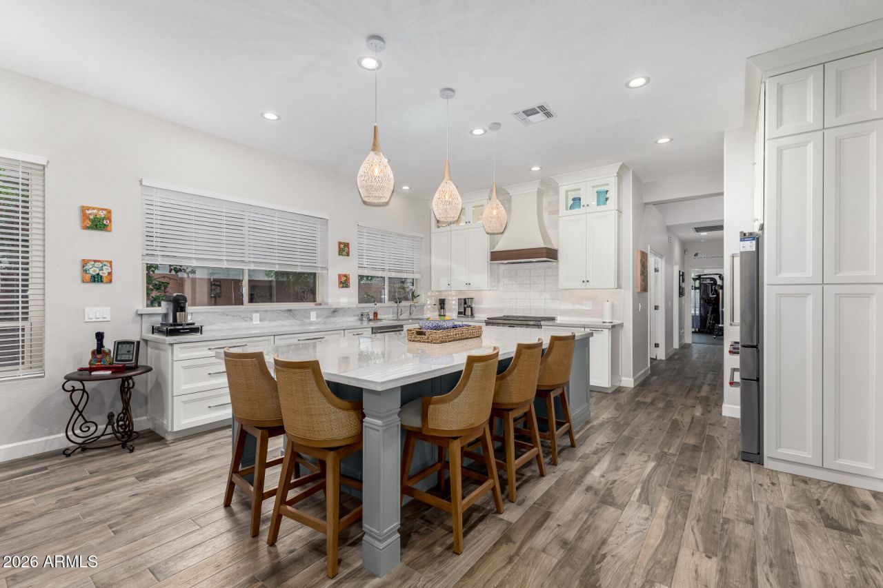 Welcome to your fully remodeled home inside Farmhouse Meadows near Historic Downtown Gilberts restaurants, shopping, and entertainment and just steps from the canal path entrance--perfect for morning walks and biking. This 3+ bedroom, 2-bath home offers both a great room and separate family room, creating flexible living and entertaining space. The updated kitchen features quartzite countertops, ceiling-height cabinetry, oversized island, and gas range. Major upgrades include new roof, windows, and insulation for improved comfort and efficiency. The primary suite includes a soaking tub for a relaxing retreat. Enjoy a private backyard oasis with pool, spa, BBQ area, and covered patio, ideal for outdoor dining, entertaining, and year-round Arizona living. Dont miss out on this gem!