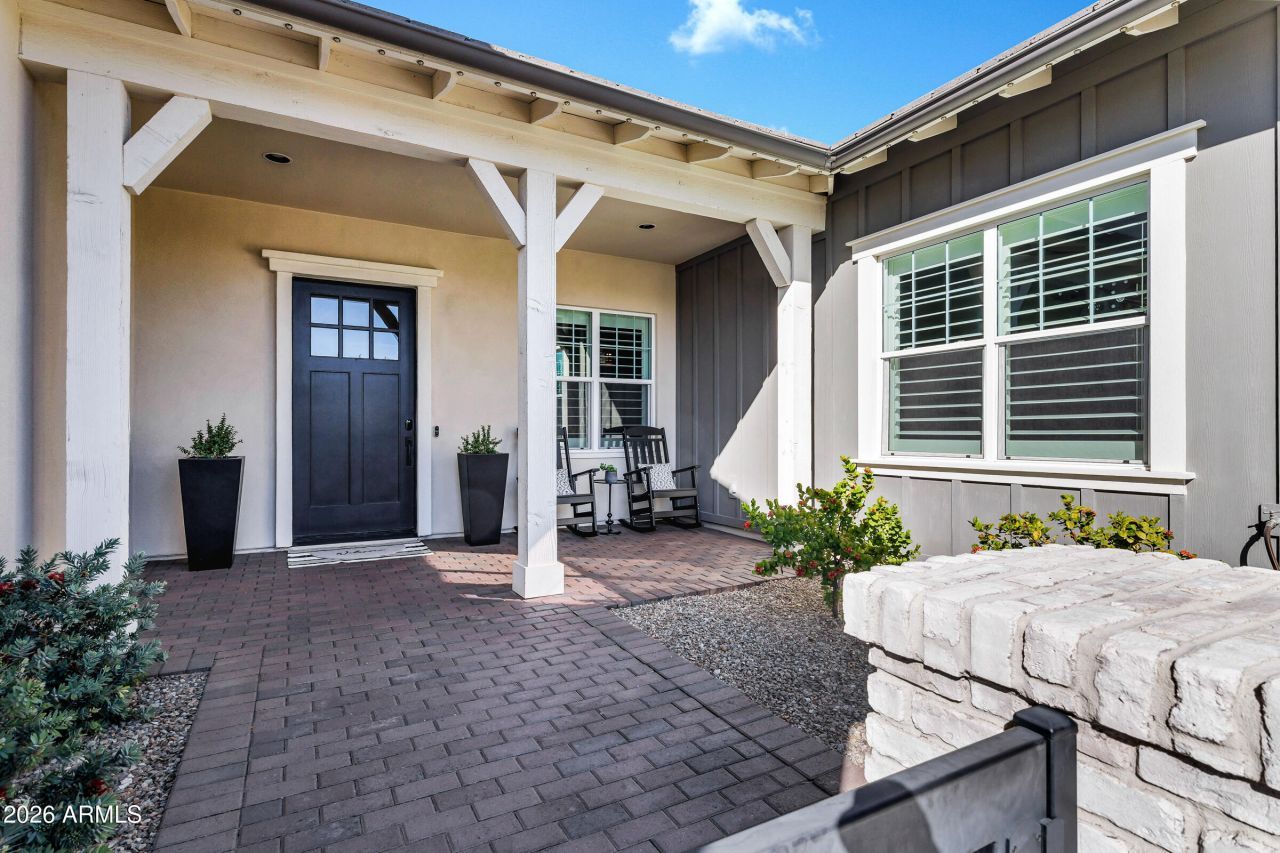 Stunning single-level 3,711 sq ft estate home built in 2021 by Camelot Homes. Located within the prestigious Heirloom Collection at Morrison Ranch, these semi-custom homes are highly sought after for their craftsmanship and thoughtful design.Designed for both grand entertaining and comfortable everyday living, this exceptional floor plan offers an extended primary suite, three additional ensuite bedrooms, 4.5 bathrooms, a private den, game room, and formal living/dining space. The dream kitchen is a true showpiece, featuring an impressive 16-foot quartz island, brick backsplash, and an upgraded appliance package including a Wolf 6-burner range, Wolf built-in oven, Wolf convection microwave/oven, KitchenAid dishwasher, and a large Frigidaire side-by-side refrigerator. High-end cabinetry with designer hardware and soft-close features completes the space. A walk-in pantry with a custom iron and glass door adds both style and function. The luxurious primary suite includes an extended sitting area, spa-inspired bathroom with a large walk-in shower and vanity area, dual walk-in closets, and a private coffee bar with beverage fridge -- your own personal retreat.The expansive great room showcases a gas fireplace with brick and stone surround that beautifully complements the kitchen finishes, slider that opens to the backyard, creating seamless indoor-outdoor living. Step outside to a true backyard paradise featuring a custom play pool, pergola with lighting, built-in BBQ, spacious covered patio, lush landscaping, and accent lighting -- perfect for Arizona evenings.Additional highlights include:* Hardwood flooring throughout (carpet only in the three ensuite bedrooms)* Custom woodwork details throughout* Designer lighting inside and out* Water softener and reverse osmosis system* Designer window coverings including shutters and roller shades* 7.1 surround sound with in-wall subwoofer in the main living area* Structured wiring throughout with in-ceiling wireless access points, outdoor patio WiFi, and permanent LED exterior lighting for the tech-savvy buyer* 3-car garage with epoxy floors, custom cabinetry, and overhead storageImmaculately maintained and exceptionally well cared for, this move-in ready gem offers luxury, comfort, and modern convenience -- and wont last long.