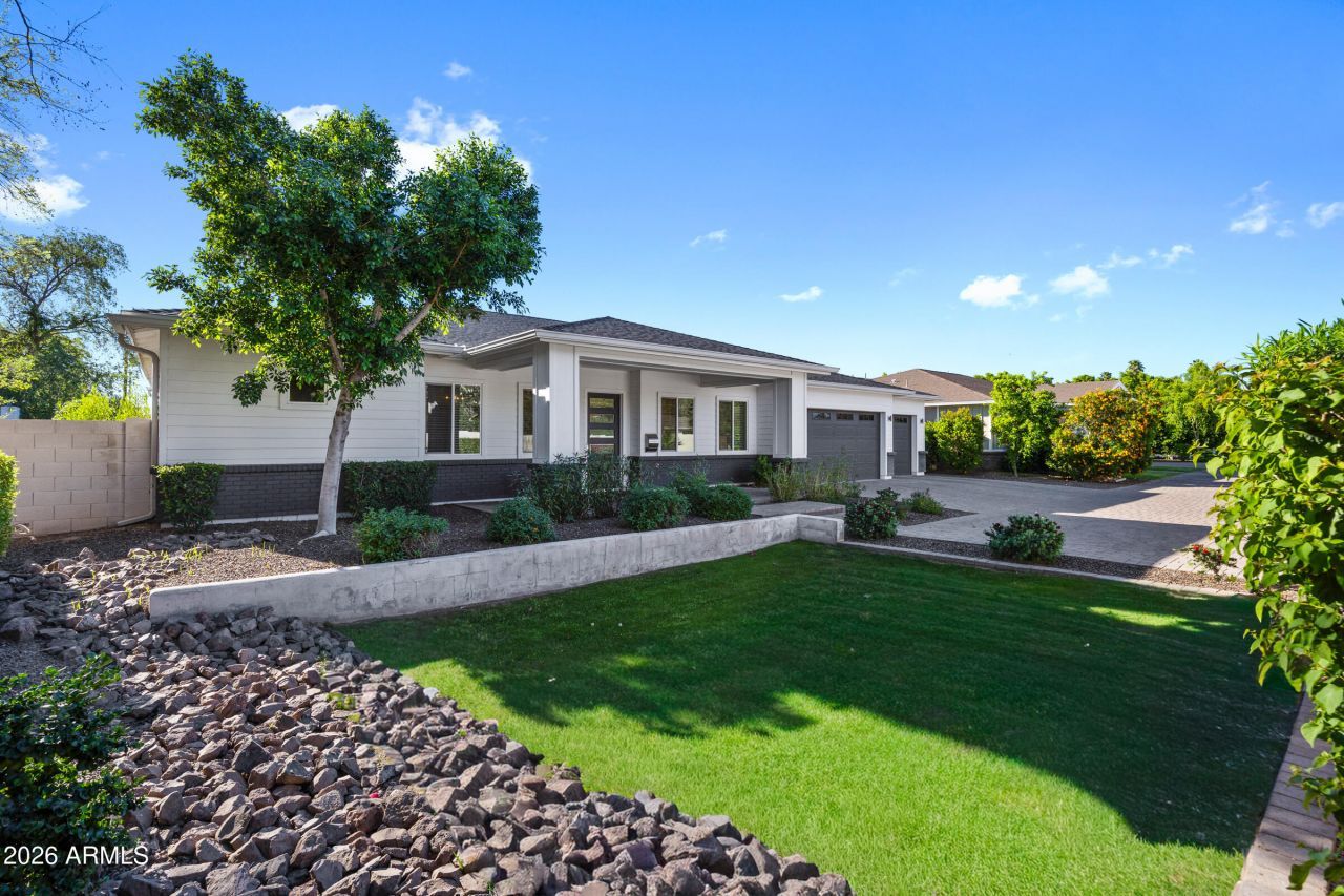 Tucked away at the end of a secluded private driveway, this exceptional North Central Phoenix residence offers rare privacy, refined design, and an expansive 17,000 sqft lot-all while remaining centrally located. A welcoming entry opens to a sophisticated piano room, ideal as a music lounge, sitting area, or quiet, technology-free retreat. Beyond the entry, the home unfolds into a spacious great room that seamlessly connects to a beautifully designed kitchen, thoughtfully updated as part of a 2023 remodel. Created for both everyday living and elevated entertaining, the kitchen is anchored by a dramatic waterfall island and features sleek European style cabinetry, premium appliances, a gas range with vent hood, built-in microwave and oven combination, and a well appointed butlers pantry. Updated flooring throughout the home enhances the clean, modern aesthetic. The open dining area sits just off the kitchen and living space, creating an effortless flow for gatherings. The primary suite is a true retreat, offering a generously sized bedroom, a spa-inspired bath with soaking tub and designer tile finishes, and the rare luxury of two custom closets. One has been transformed into a stunning boutique-style dressing room, complete with built-ins and a center island--bringing both function and a touch of everyday luxury. A versatile flex space adapts to your lifestyle, ideal for a home gym, office, media room, or playroom. One of the secondary bedrooms has been thoughtfully converted into a dream home office, featuring beautiful built-ins and a highly functional layout--while still offering the flexibility to easily convert back to a bedroom if desired. Three secondary bedrooms are positioned in their own wing, each with walk-in closets, including one with a private en suite bath. An additional full bath and a well-designed laundry room with ample storage complete the interior. Step outside to your beautiful backyard oasis and dont forget to check out the raised garden along the side of the home--an ideal space for gardening, relaxing, or simply enjoying the outdoors. The expansive lot offers endless potential to further personalize the outdoor experience.Blending thoughtful upgrades, flexible living spaces, and a private setting that feels tucked away yet connected to everything, this home delivers comfort, style, and functionality in one exceptional luxury offering.