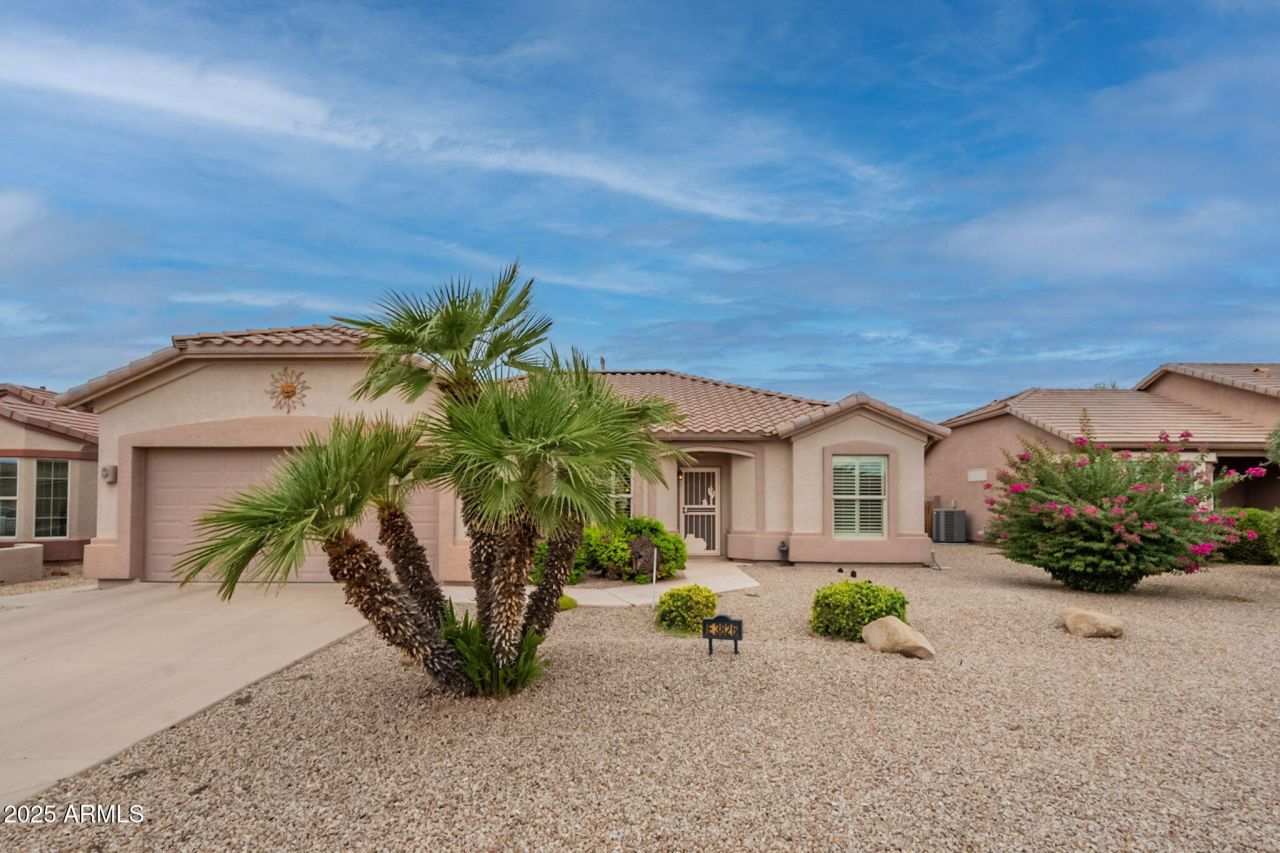 Discover the popular Horizon floor plan in the highly sought-after 55+ community of Solera! This 2-bedroom, 2-bath split layout offers both privacy and comfort. The kitchen is a equipped with stainless steel appliances and granite countertops, while the primary suite features an updated onyx shower. Plantation shutters throughout add timeless charm. Enjoy morning coffee or evening gatherings on the covered patio, with ideal north/south exposure for year-round comfort. Living in Solera means more than just a home, its a lifestyle. Residents enjoy championship golf, pools, spa, tennis, pickleball, and a full calendar of social activities. Dont miss this opportunity to own a beautiful home in a vibrant, active community!