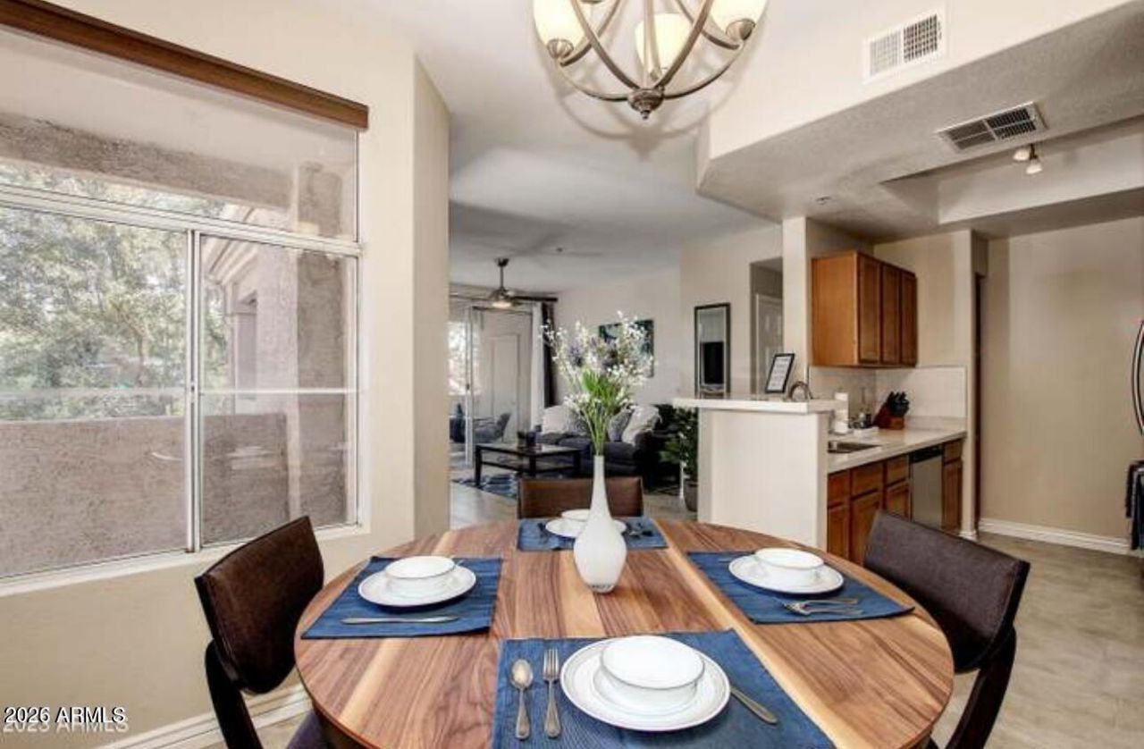 One-of-a-kind 1-bedroom condo with beautiful pool views and just a 3-minute walk to the community clubhouse and amenities. The upgraded kitchen features quartz countertops, rich wood cabinetry, newer stainless steel appliances, and a built-in microwave. The remodeled bathroom includes an updated vanity and modern fixtures, with stylish tile flooring throughout the home. A brand-new AC unit installed in 2025 adds year-round comfort. Enjoy resort-style living with access to community pools, spa, fitness center, and clubhouse, plus nearby walking and biking trails. Conveniently located in Ahwatukee just off I-10, close to dining, shopping, casinos, Downtown Phoenix, and Sky Harbor Airport. Water, sewer, and trash included. Available for move-in 4/2/2026.