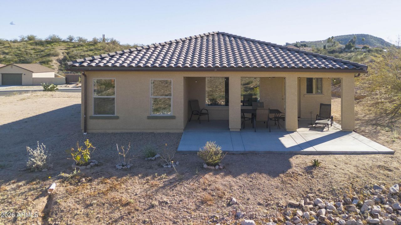 This charming 1,204 sq ft home built in 2021 sits in the popular Wickenburg Vistas neighborhood. The spacious 12,013 sq ft lot offers plenty of room for a pool, workshop or other addition. The well designed floor plan features 3 bedrooms, 2 bathrooms and an inviting great room. The kitchen has granite countertops, breakfast bar and stainless steel appliances. The owners suite includes a large bedroom, spacious walk in closet and bathroom with double sinks and an extra large shower. Additional highlights include an indoor laundry with washer and dryer, a two car garage, covered back patio and attractive landscaping with automatic watering systems. Conveniently located less than a mile from downtown Wickenburg, this property also offers beautiful mountain views. No HOA! Come take a look!