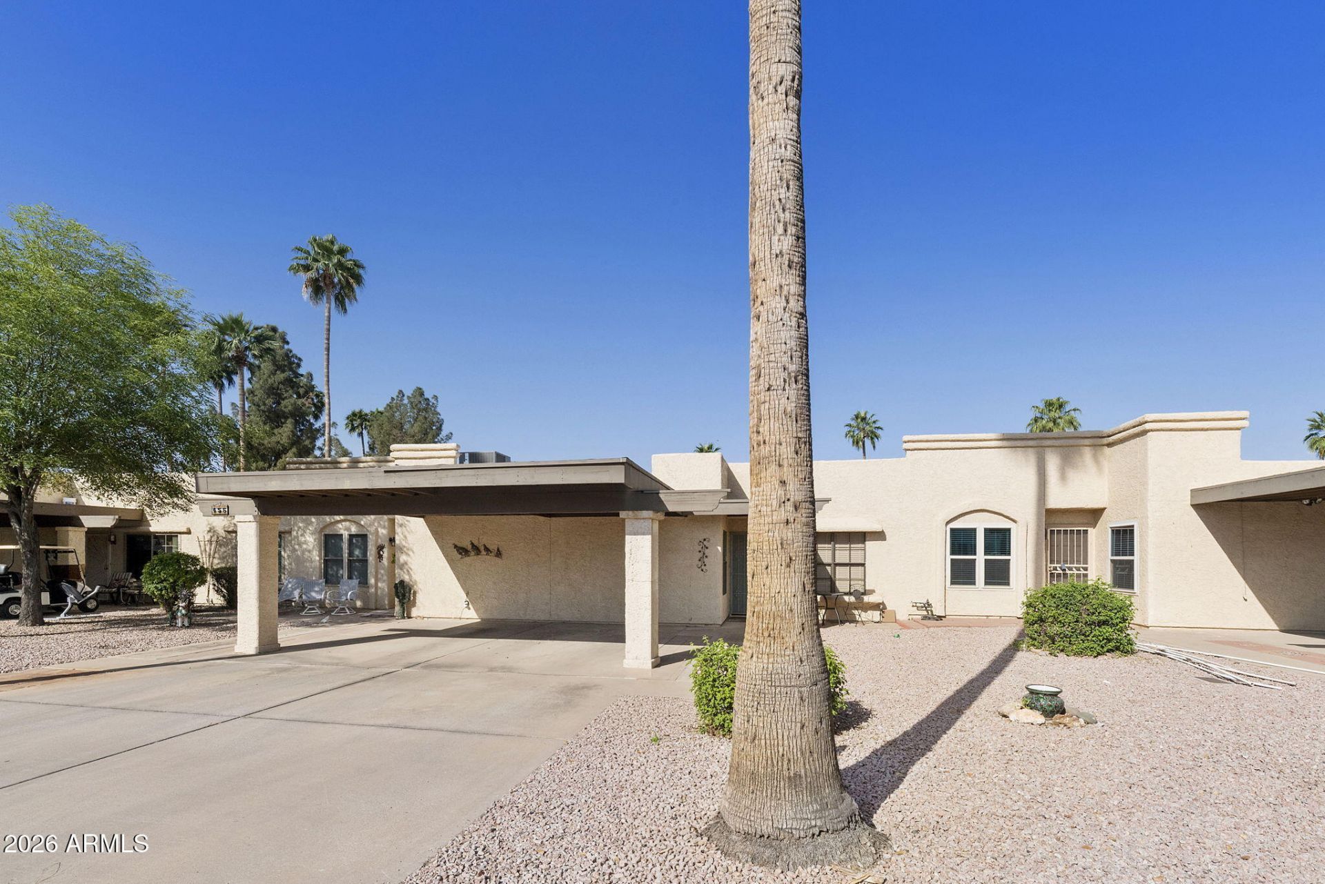 Welcome to your like-new home in the gated 55+ community of Fountain of the Sun! This residence features a total 2024 reimagining with full updates to the wiring, plumbing, kitchen, bathrooms, and flooring. The modern interior offers a desirable split master bedroom floor plan with a walk-in closet and a sleek mix of tile and vinyl flooring. The gourmet kitchen is fully updated (2024) with quartz countertops, a built-in microwave, refrigerator, dishwasher, and disposal. This home is designed for worry-free living with an inside laundry room (washer and dryer included), and a full roof update for 2026. Enjoy the Arizona weather from your covered patio with ideal east-west exposure. CLICK MORE... Sorry, this is a NO PET AREA. Walking distance to the main pool/spa, Activity Center, Birdies Restaurant, Golf Pro Shop, and driving range. Conveniently located near the US 60 and Red Mountain Freeways, with easy access to Mesa Gateway Airport, Sky Harbor, and Costco. Superstition Springs & San Tan Mall are a short drive away. Enjoy Country Club & Golf Community amenities, including a lake, golf course, pickleball, bocce ball, fitness, billiards, library, and more.