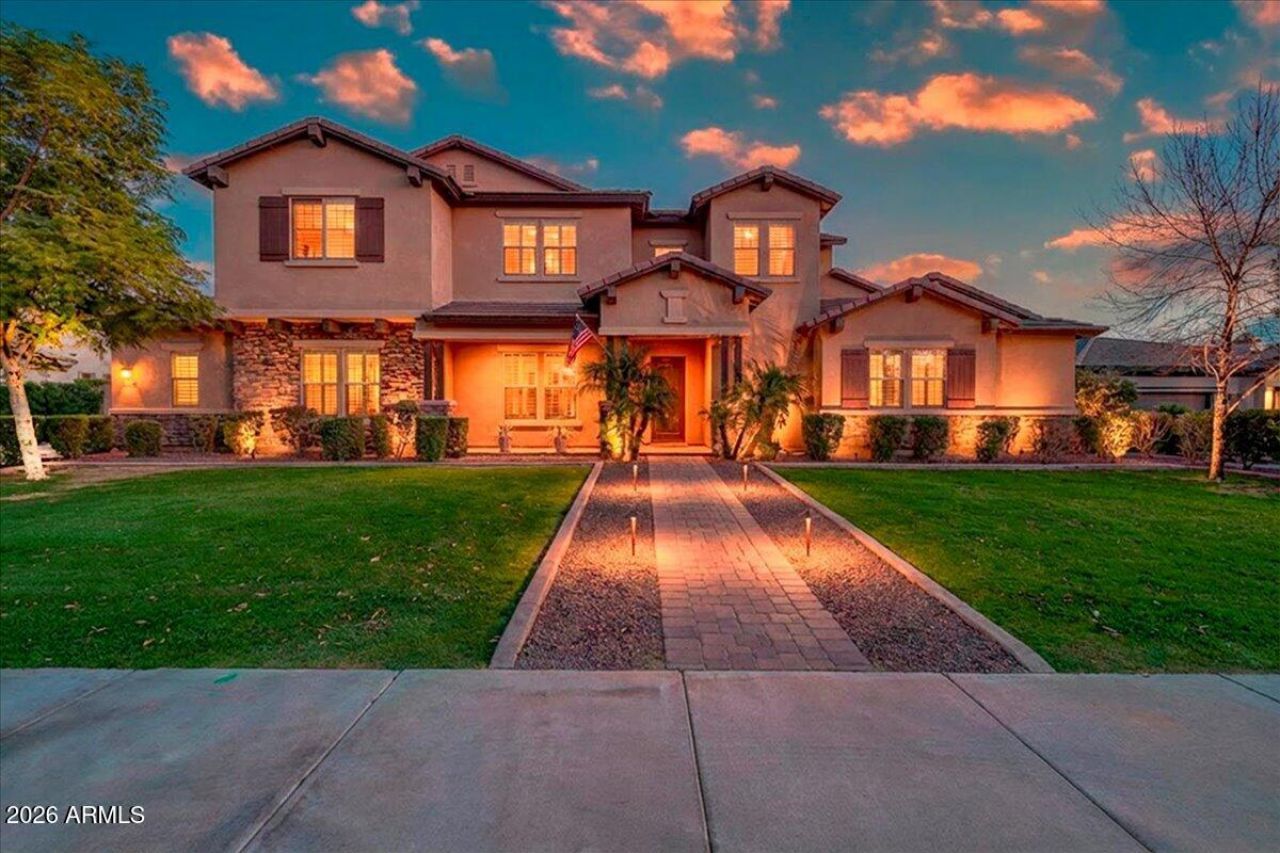 Prepare to be captivated. Perfectly positioned on one of the largest golf course lots in all of The Village at Litchfield Park, this extraordinary estate commands sweeping views of the lush fairways of the Wigwam Golf Club and offers a lifestyle that feels like a permanent vacation. From the moment you arrive, the setting alone sets this home apart; expansive, private, and simply unforgettable. This 5-bedroom, 5.5-bath showpiece was masterfully designed to impress, blending refined elegance with effortless indoor-outdoor living and exceptional entertaining spaces.At the heart of the home, the chefs kitchen is a true standout, featuring a built-in refrigerator, double ovens, built-in ice maker, butlers pantry with beverage refrigerator, walk-in pantry, and endless custom cabinetry... Oversized sliding glass doors disappear to reveal a resort-style backyard complete with a lap-length heated pool with in-water seating, an oversized spa, multiple lounge areas, and a fully equipped outdoor kitchen with built-in grill, sink, and expansive granite prep space, all framed by breathtaking golf course views. The bright, ground-floor primary suite feels like a luxury retreat with a tray ceiling, new tile flooring, a spa-inspired snail shower, custom linen closet, and an expansive walk-in closet with built-in organization. Upstairs, a spacious flex area leads to a grand balcony where you can savor Arizonas vibrant sunrises, while three generous bedrooms each offer their own ensuite bath and custom walk-in closet, conveniently located near an upstairs laundry room with soaking sink and cabinetry. Guests will enjoy ultimate privacy in the 498-square-foot detached casita featuring a separate bedroom, sitting area, full bath, retractable awning, and two walls of oversized sliding glass doors. Complete with a 4-car garage with sink, workbench, and built-ins, a dramatic stone-framed electric fireplace, and custom library shelving and desk, this is more than a home--its a rare golf course estate designed for those who expect the extraordinary.