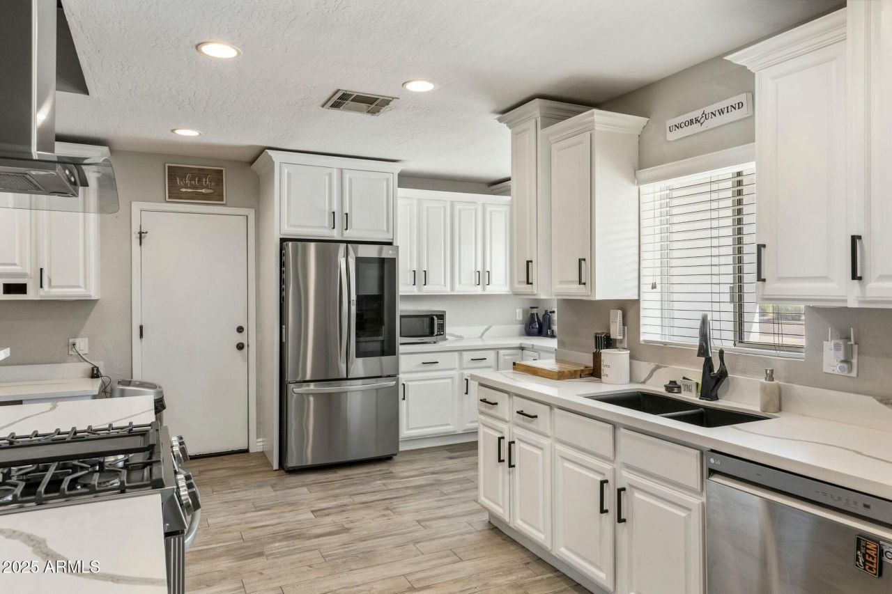 Dont miss this incredible opportunity to own a beautifully updated 4 bed, 3 bath home in the highly desirable Arcadia/Osborn area. This open-concept property features excellent curb appeal, a 1-car garage, RV gate, and vaulted ceilings with exposed wood beams that add warmth and character. The interior boasts a spacious formal living and dining room with stylish flooring throughout. A cozy wood-burning fireplace creates an inviting atmosphere, while the generously sized bedrooms offer comfort and flexibility for families or guests. The updated kitchen is a true standout, featuring new stainless steel appliances, quartz countertops, ample cabinetry for storage, and a breakfast barâ??perfect for casual dining and entertaining. The primary suite includes a full en-suite bath