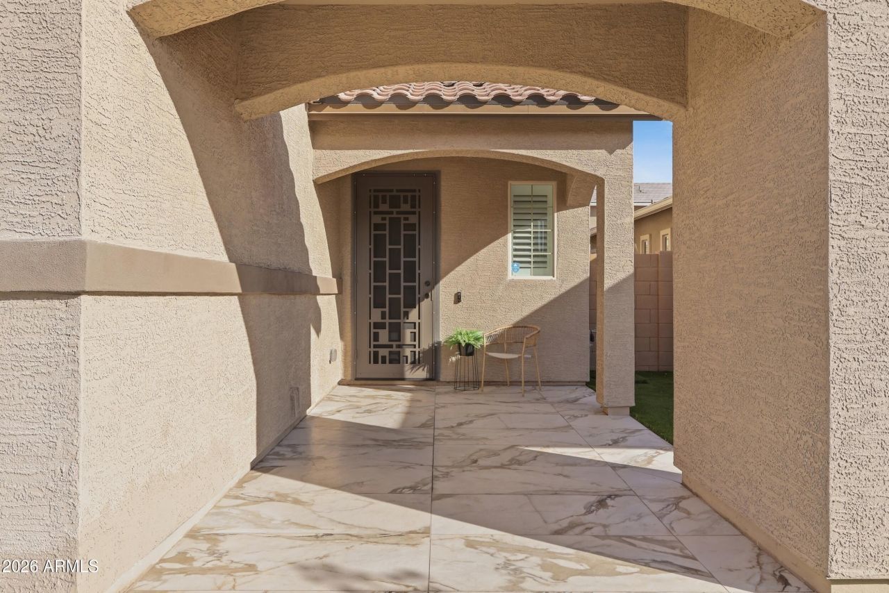 MOVE-IN READY with builder & appliance warranties. Seller offering BUYER CONCESSIONS & additional home warranty. TURNKEY 2022 BUILT. GATED. PRIME LOCATION! Pristine, like-new condition, this home offers the feel of new construction!SOARING 20ft Foyer ceiling create an unforgettable first impression! Clean modern railings & open sightlines elevate the entire space. A charming front portico adds welcoming curb appeal. UPGRADED GOURMET KITCHEN features extended 36 range with powerful hood to match, stacked wall appliances, RO System, true eat-at OVERSIZED island, & expanded dining room designed for large holiday dinners & entertaining. Enjoy the convenience of a spacious downstairs bedroom and full bathroom!Upstairs offers a MASSIVE LOFT,. guest bedroom with ENSUITE BATH, and an large-capacity washer/dryer in the laundry room that will convey with the home. The primary suite impresses with a HUGE WALK-IN CLOSET & large walk-in shower. STORAGE EVERYWHERE - generous interior closets, additional WALK-IN MUDROOM CLOSET downstairs, plus an extended garage side nook with overhead storage, EV charger, water softener, gas water heater. Professionally landscaped front/backyards with turf, travertine pavers, and tile - year round appeal & minimal upkeep. Front yard features modern stepped hardscape and built-in landscape lighting for elevated curb appeal. Enjoy community walking paths and a childrens playground. Close proximity to retail, golf courses, gyms, restaurants, top-rated CUSD schools - Hamilton High, BASIS, and enjoy easy access to 202!