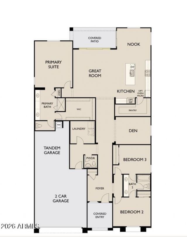 Welcome to the Topaz plan, a stunning single-story home offering 2,507 square feet of thoughtfully designed living space. This home features three spacious bedrooms, a den, and two and a half baths, providing ample room for both relaxation and entertainment. The contemporary craftsmen exterior is complemented by a paver driveway, and a three-car tandem garage for added convenience.An impressive 8-foot front door welcomes you inside, once indoors, youll fall in love with the spacious open-concept design enhanced by 9-foot ceilings and 8 ft interior doors all throughout.The Topaz features our Harmony collection. The Harmony Collection offers a bright, clean aesthetic with modern touches that feel both timeless and inviting. At the heart of the home, the kitchen features elegant 42-inch white shaker style cabinetry that creates a sense of height and openness, beautifully paired with sleek gunmetal hardware for a subtle, contemporary contrast. A stylish tile backsplash adds texture and visual interest, while the white quartz countertops provide a crisp, polished surface that enhances the light and airy feel of the space. Together, these elements create a kitchen that is both sophisticated and highly functional. Additionally, a single basin stainless steel sink along with stainless steel appliances including gas range, dishwasher, microwave, and fridge add a modern touch, while still being fully functional.Throughout the main living areas excluding the bedrooms and den youll find 8 x 36 wood-look plank tile flooring. This larger-format tile adds warmth and continuity, delivering the natural beauty of wood with the durability and easy maintenance of tile, perfect for everyday living. In the bathrooms and throughout the home, matte black finishes and door hardware introduces a bold, modern edge, creating a cohesive design that balances softness with striking detail.The great room is a true highlight, with a 4-panel sliding glass door that opens to a spacious backyard to create a seamless transition between indoor and outdoor living spaces. Additional features include a soft water loop, garage door opener, pendant prewire, washer/dryer, and blinds throughout. This home offers the perfect blend of style, functionality, and luxury.Overall, the Harmony Collection blends bright, refined finishes with contemporary accents, resulting in a beautifully balanced home that feels fresh, stylish, and effortlessly livable.
