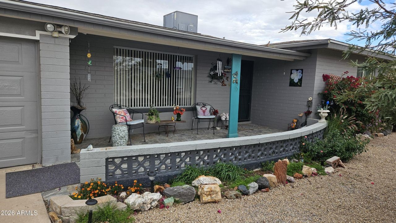 Move-in-ready home in the highly sought-after Dreamland Villa community. This elegant 2-bed, 2-bath residence showcases inviting curb appeal with a welcoming front patio, bright living and dining areas, and an oversized Arizona room perfect for relaxing or entertaining. The 2-car garage is complemented by a side slab for extra parking and a flexible laundry or hobby space. Enjoy low-maintenance landscaping, mature fruit trees, a covered patio, and a private sitting area ideal for gatherings or a spa. No mandatory HOA, with an optional low-cost association offering a recreation center, pools, and amenities. Prime location near freeways, hospitals, shopping, and hiking. Newer central AC plus split units in each bedroom, dual Payne windows, new sewer line, and separate 2nd bedroom entry.