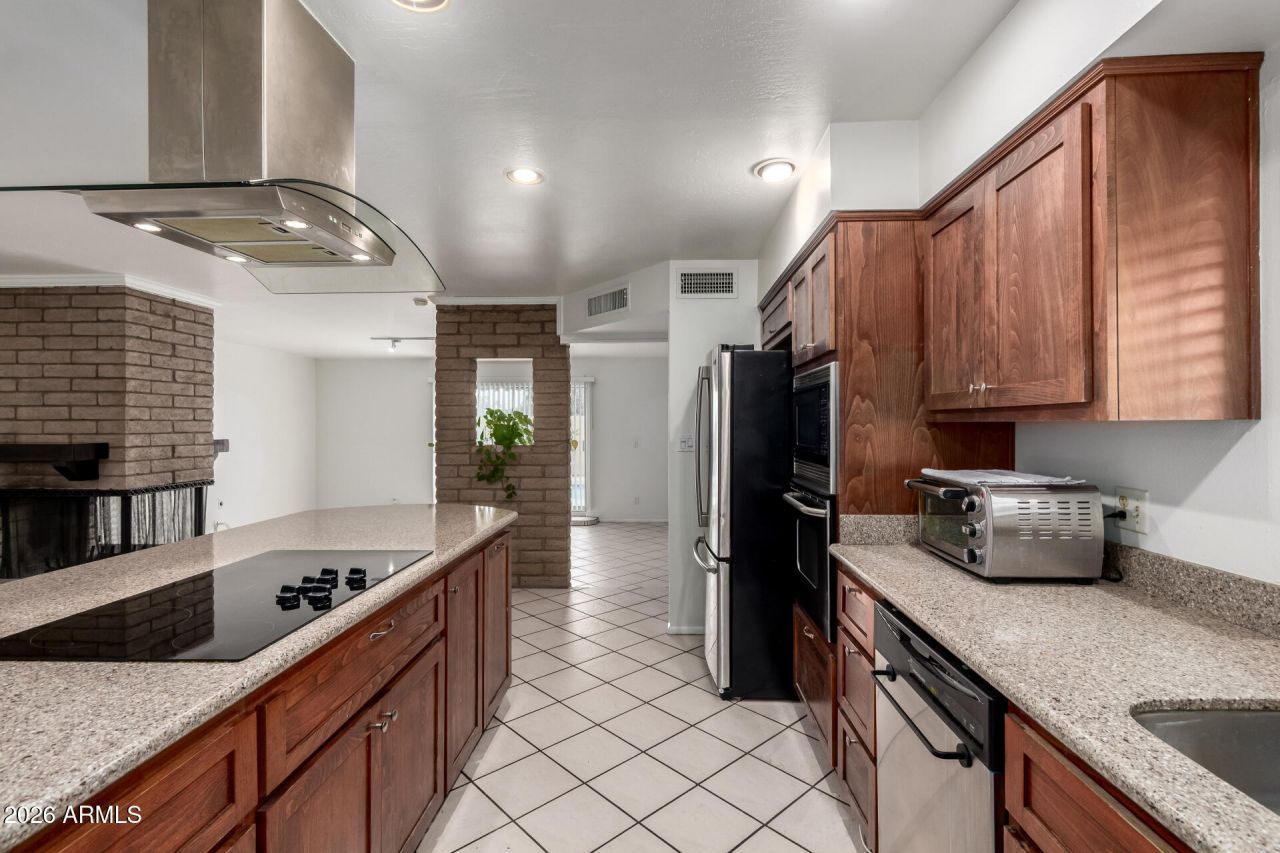 NEW POOL EQUIPMENT/SALTWATER SYSTEM, NEW ROOF, NEW PLUMBING AND RECENT EXTERIOR PAINTING... Welcome to this well-maintained home located in a centrally positioned area of North Phoenix, offering convenient access to major freeways including I-17, I-10, and SR-51, as well as nearby shopping AND dining!Interior highlights include a two-way wood-burning fireplace with exposed brick, an updated kitchen with granite countertops, stainless steel appliances, and a large peninsula with breakfast bar seating. Recent updates include a remodeled guest bathroom with dual sinks. The primary suite offers direct access to the backyard, creating a seamless indoor-outdoor connection. Outdoor features include a private swimming pool with brick paver decking, a covered patio, grassy yard area, mature shade trees, and additional storage with a shed. RV gate access adds convenience and flexibility.With its functional layout, outdoor amenities, and highly accessible location near major transportation routes, this property presents an excellent opportunity to enjoy comfort and convenience in North Phoenix.