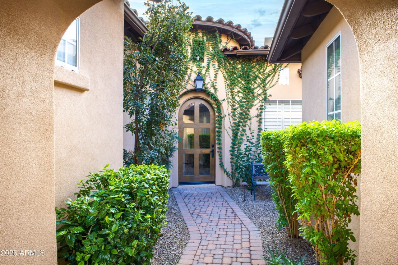 Discover this charming 3-bedroom villa with a den & 3 bathrooms, ideally situated in the highly desirable, gated community of DC Ranch. A paver-stone driveway leads to a welcoming front courtyard with separate guest casita. Step inside through the custom wood-and-glass entry door. The spacious kitchen offers stainless steel appliances, gas cook top, pantry, large island and a cozy breakfast nook overlooking the courtyard. Interior highlights include newer carpet, recently re-stained cabinetry, plantation shutters, travertine tile floors, gas fireplace in family room, ceiling fans and recessed lighting. Primary suite offers direct access to the back patio and ensuite bath features tile countertops, a separate tiled shower and soaking tub, dual sinks, and an expansive walk-in closet with custom built-in shelving and drawers. Relax and enjoy the mountain views on the South facing private back patio. Situated within walking distance to Market Streets retail shops and restaurants, the location within the community is unbeatable. The DC Ranch community offers 50 miles of manicured paths and trails, community pocket parks, and the 15,000 sq ft Desert Camp Community Center with a state-of-the-art fitness center, lap pool, kids splash pool, tennis and pickleball courts, basketball court, playground, grassy play area, and resident gathering spaces. Dont miss this DC Ranch villa in prime North Scottsdale location.