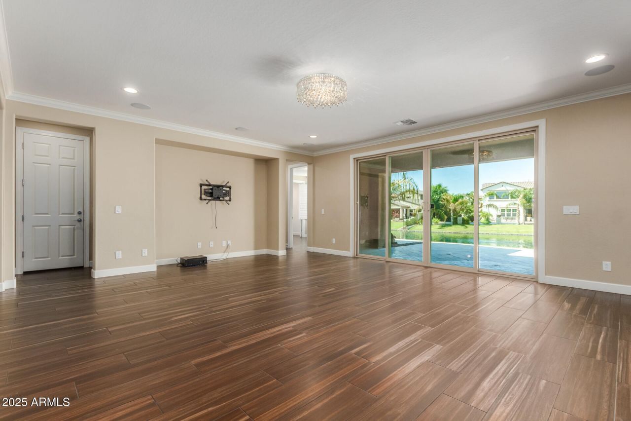 Location, Location, Location! Exceptional gated lakefront residence situated on a premium $145K waterfront lot in the highly sought-after Echelon at Ocotillo community. This luxurious 5-bedroom home plus den and loft offers breathtaking water views and an ideal blend of elegance, comfort, and functionality. Outstanding curb appeal welcomes you with stone accents, a cozy front porch, and a 3-car tandem garage.Inside, the immaculate interior features soaring ceilings, rich wood flooring, plantation shutters, elegant lighting, and a formal dining room, while expansive sliding glass doors seamlessly connect indoor and outdoor living. The gourmet kitchen is a chefs dream with crown-molded cabinetry, granite countertops, stainless steel appliances, wall ovens, a tile backsplash, a large island with breakfast bar, and a bright breakfast nook. A private den provides the perfect home office or flex space.Upstairs, a spacious loft offers endless possibilities as a game room, media room, or gym. The primary suite is a true retreat with a spa-style ensuite featuring dual vanities, a glass-enclosed shower, and a generous walk-in closet. Secondary bedrooms include private baths, walk-in closets, and a Jack-and-Jill layout. Additional highlights include built-in surround sound, a soft water system, and premium upgrades throughout.Step outside to a serene lakefront backyard oasis featuring upgraded travertine tile flooring, a covered patio, easy-care landscaping, voice-activated lighting, and stunning water viewsperfect for entertaining or relaxing at sunset. This rare lakefront opportunity offers the ultimate Ocotillo lifestyle.