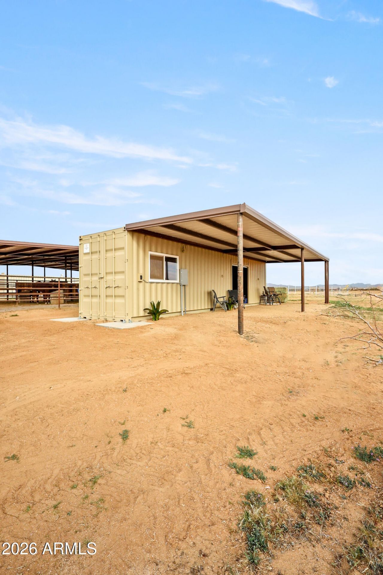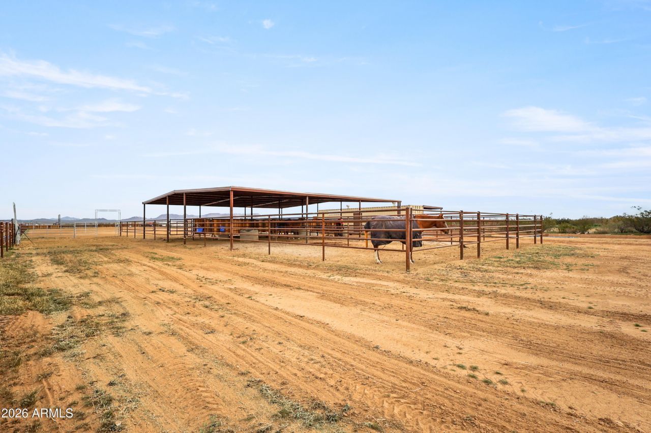 Check out this amazing 4-acre horse property!! Come build your dream home! Horse facility is already built and ready to go! Full sized 150 x 300 arena with mortar sand and no rocks! A 6-stall mare motel with 15 x 20 stalls that have 30 runs attached. Also includes a 40 Conex Box Tack/Storage Room! There is also a 2000 40 Country Coach Intrigue Motor Home that will convey with the property if it sells at full asking price. 50-Amp power has already been run to the Conex and RV. Has a ¼ share of the 700 well assigned to the parcel. Aguila Water Company is scheduled and ready to come out to finish hooking up the water. Prime location that is located within a short riding distance of Sharp Veterinary Services, Silver Bit Arena, and acres of public land! There are acres of usable, flat ready-to-build land that would be perfect for your dream home!