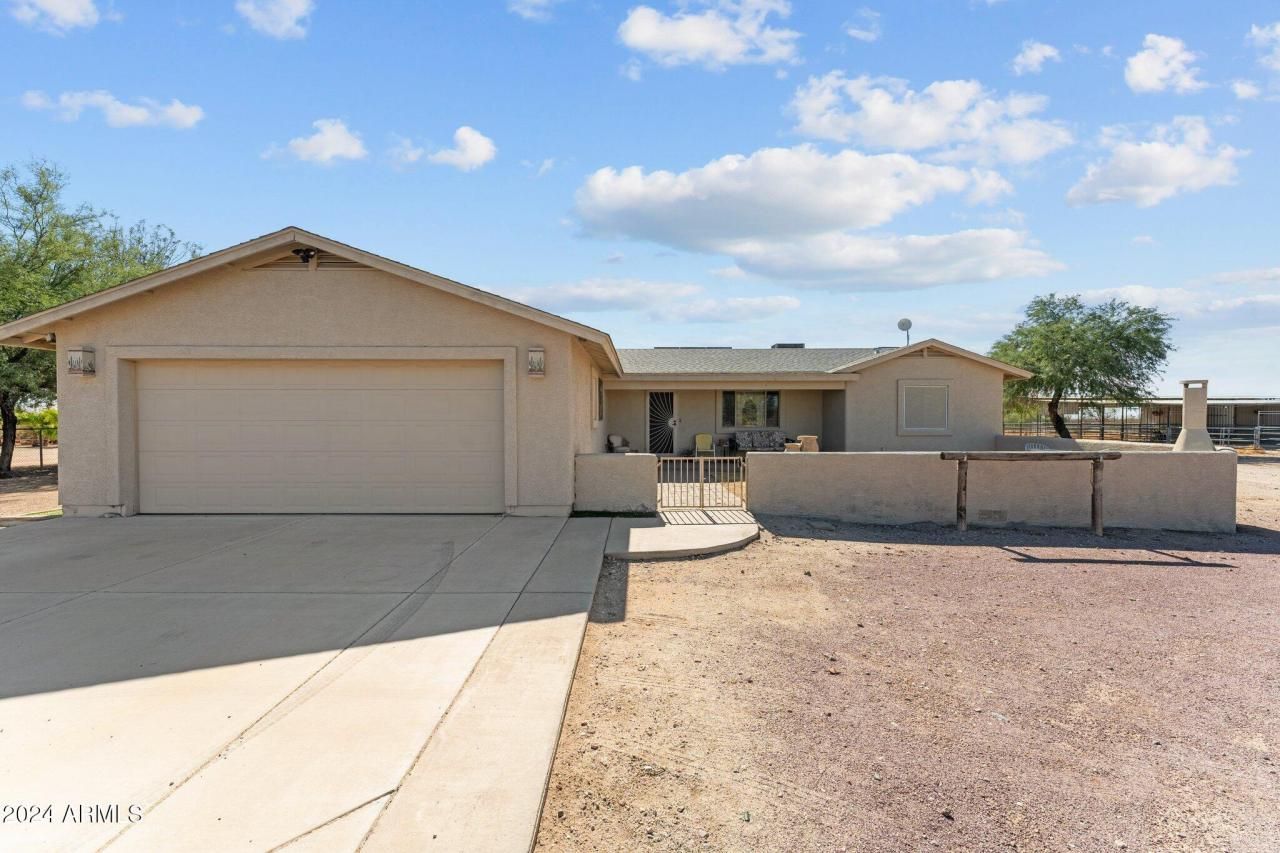 Edit mortgage details for a more accurate payment5 ACRES FULLY FENCED, MOVE IN READY FURNISHED HOME, TRACTOR, IMPLEMENTS, 2 GOLF CARTS, FLATBED TRAILER, HOT TUB, TOOLS ALL CONVEY IN PURCHASE, 6 STALL MARE MOTEL, 2 LARGE TURNOUTS, HORSE WALKER, TACK ROOM, WASH RACK, FEED ROOM WITH WASHER & DRYER, 2 CAR GARAGE & ADDITIONAL DETACHED 2.5 CAR GARAGE PLUS A METAL CARPORT FOR STORAGE, PARCEL 503-17-333A INCLUDED IN PURCHASE THIS PARCEL IS VACANT & READY FOR YOUR HORSE SET UP, CIRCULAR DRIVEWAY, ENCLOSED COURT YARD WITH FIREPLACE, LOTS OF ROPERS IN THIS AREA, 15 MINUTES TO SURPRISE FOR ALL YOUR SHOPPING & DINING,